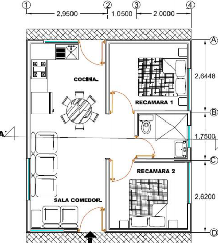 42 m2 Two Bedroom , One bathroom , Kitchen & Living Room